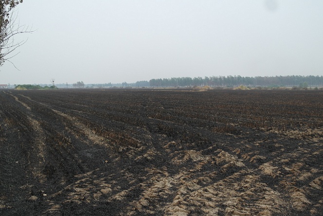 在此次工作过程中,考察人员克服了高温酷暑、麦秸秆田间无考察路线及当地一些客观原因等困难,在环保部环监局区域处的大力支持和协调下,顺利完成了此次考察任务。卫星中心遥感室陈洁和高浩通过对秸秆焚烧区的实地考察,获取了秸秆焚烧区样本边界空间分布信息,秸秆焚烧区各类目标实况资料,并实地计算过火区面积,分析过火区的过火程度,特别是过火区混合像元目标的特性,从而为提高卫星估算秸秆焚烧过火区面积的精度提供必要的实况信息支持。